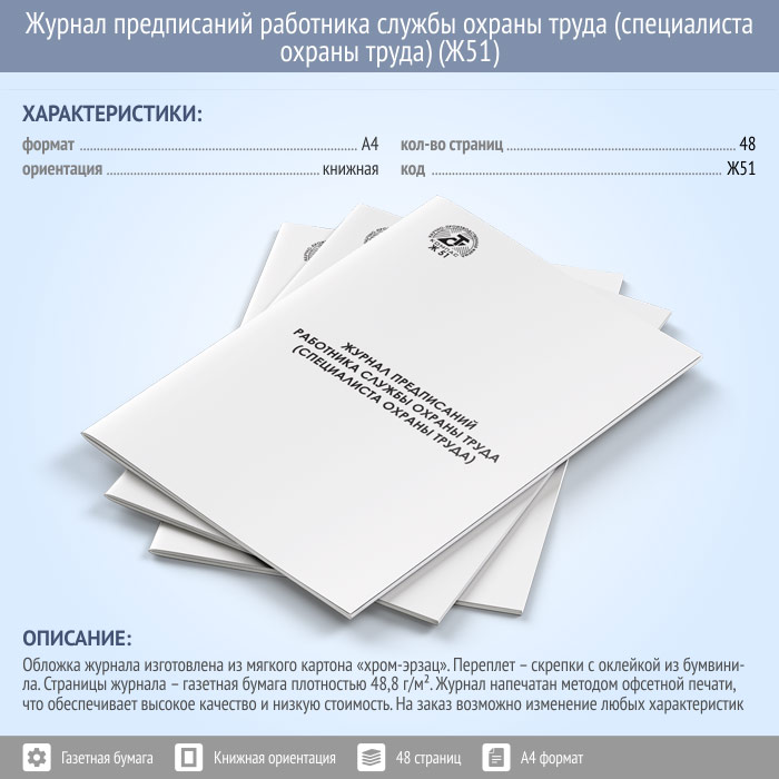 Журнал предписаний работника службы охраны труда (специалиста охраны труда, 48 стр., Ж51) в Ижевске купить
