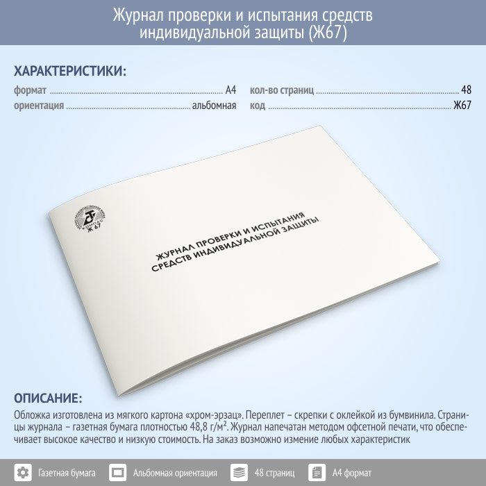 Журнал проверки и испытания средств индивидуальной защиты (48 стр., Ж67) в Ижевске купить
