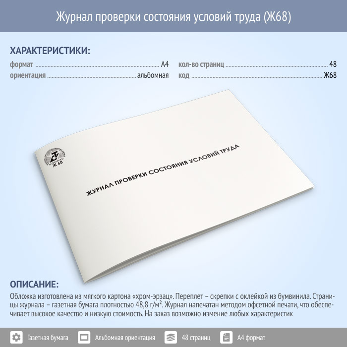Журнал проверки состояния условий труда (48 стр., Ж68) в Ижевске купить