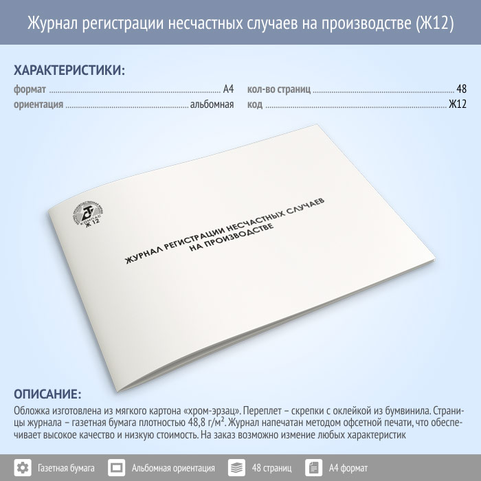 Журнал регистрации несчастных случаев на производстве (48 стр., Ж12) в Ижевске купить