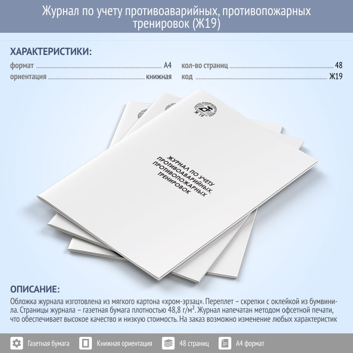 Журнал по учету противоаварийных, противопожарных тренировок (48 стр., Ж19) в Ижевске купить