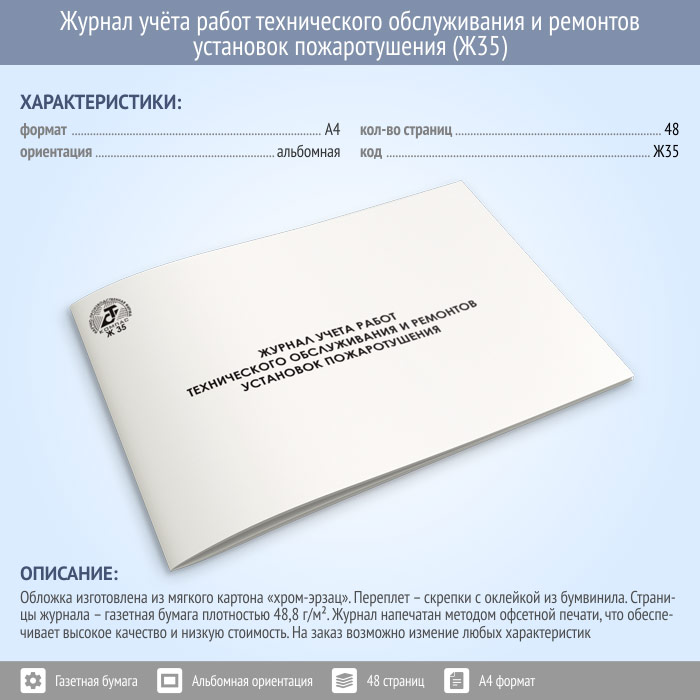 Журнал учета работ технического обслуживания и ремонтов установок пожаротушения (48 стр., Ж35) в Ижевске купить