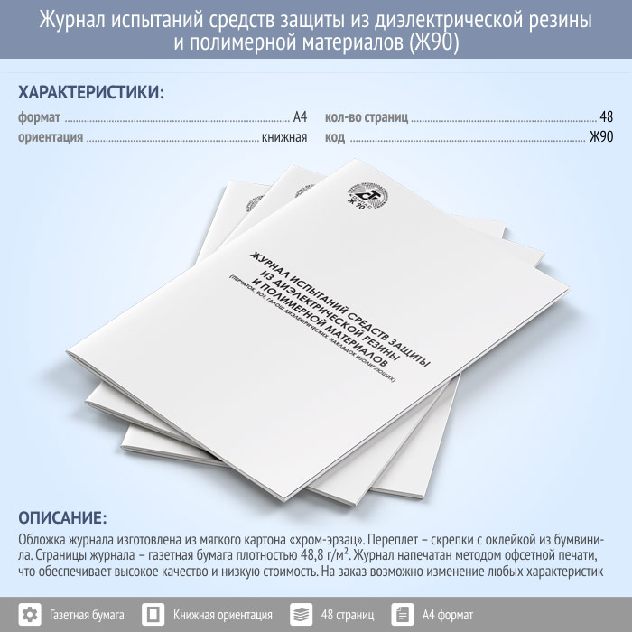 Журнал испытаний средств защиты из диэлектрической резины и полимерных материалов (48 стр., Ж90) в Ижевске купить