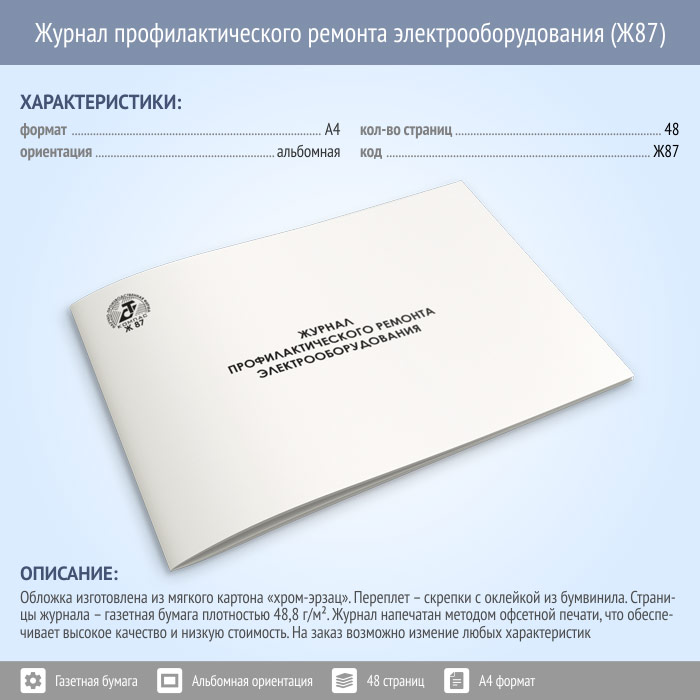 Журнал профилактического ремонта электрооборудования (48 стр., Ж87) в Ижевске купить
