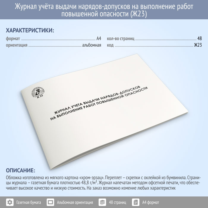 Журнал учета выдачи нарядов-допусков на выполнение работ повышенной опасности (48 стр., Ж23) в Ижевске купить