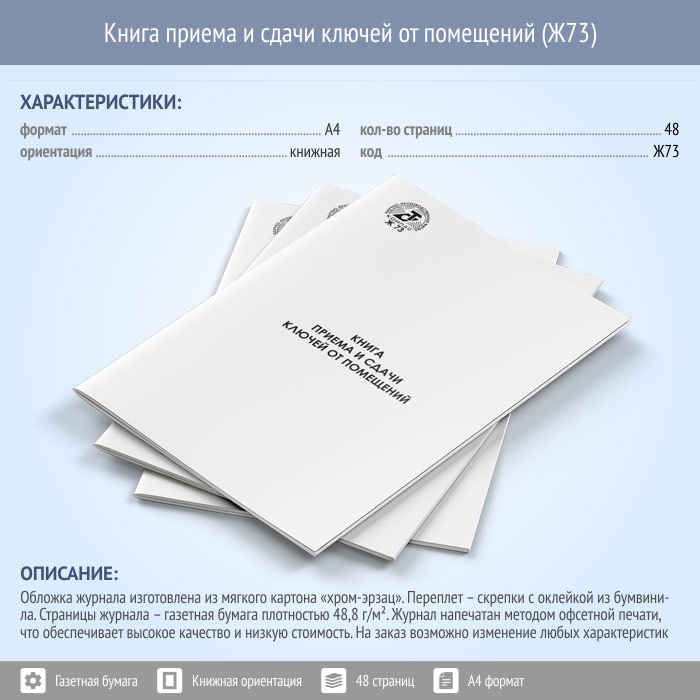 Книга приема и сдачи ключей от помещений (48 стр., Ж73) в Ижевске купить