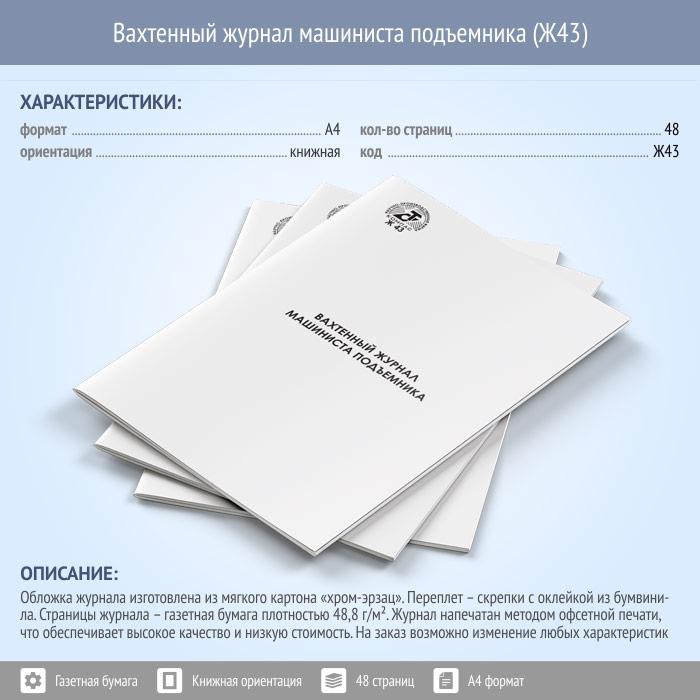 Вахтенный журнал машиниста подъемника (48 стр., Ж43) в Ижевске купить