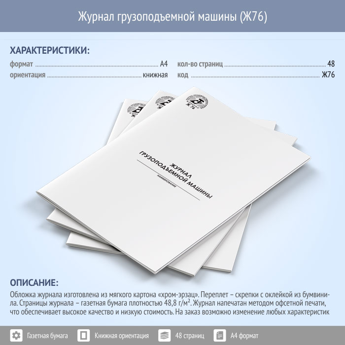 Журнал грузоподъемной машины (48 стр., Ж76) в Ижевске купить