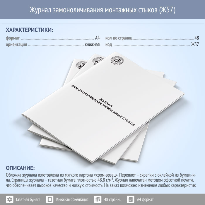 Журнал замоноличивания монтажных стыков (48 стр., Ж57) в Ижевске купить