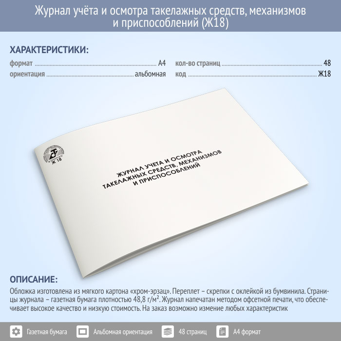 Журнал учета и осмотра такелажных средств, механизмов и приспособлений (48 стр., Ж18) в Ижевске купить
