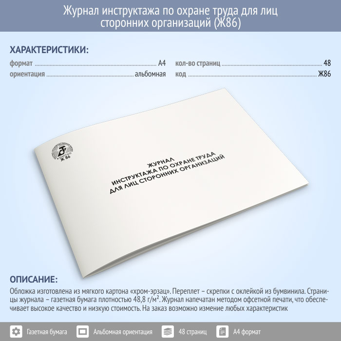 Журнал инструктажа по охране труда для лиц сторонних организаций (48 стр., Ж86) в Ижевске купить