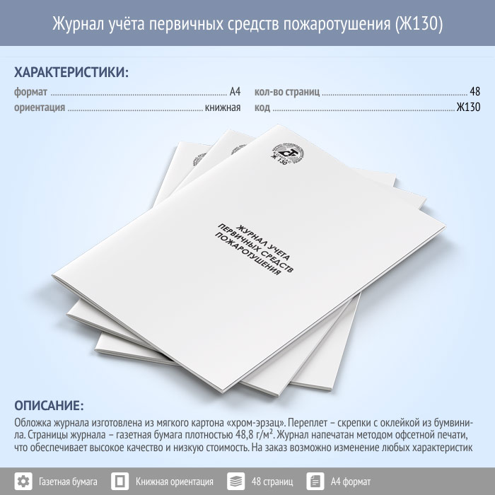 Журнал учета первичных средств пожаротушения (48 стр., Ж130) в Ижевске купить