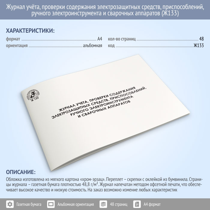 Журнал учета проверки и содержания электрозащитных средств, приспособлений, ручного электроинструмента и сварочных аппаратов (48 стр., Ж133) в Ижевске купить