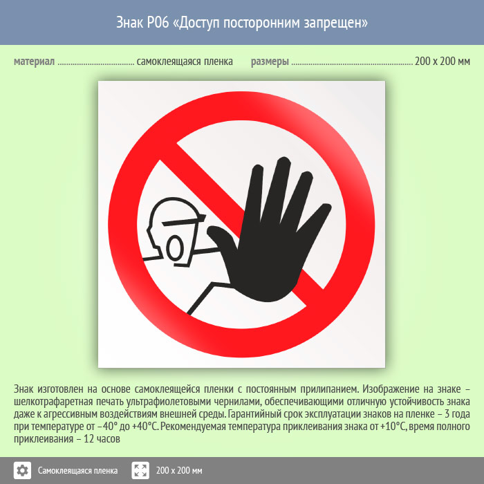 Знак «Доступ посторонним запрещен» имеет размер 200х200 мм