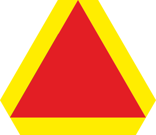 Знак «Тихоходное транспортное средство», ОЗ-1 в виде равностороннего треугольника красного цвета и с каймой желтого или красного цвета. Размещается сзади механических транспортных средств, для которых предприятием-изготовителем установлена максимальная скорость не более 30 км/ч. Знак выглядит как красный треугольник с равными сторонами и с желтой или красной каймой
