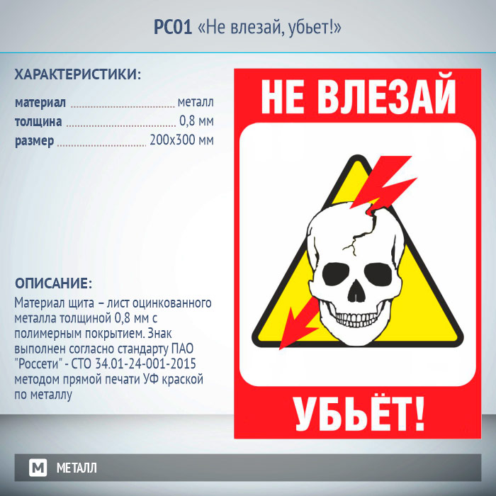 Знак «Не влезай, убьет!», РС01 (металл, 200х300 мм) в Ижевске купить