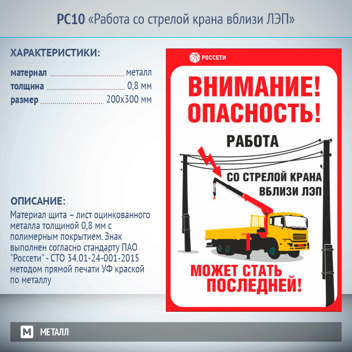 Знак «Работа со стрелой крана вблизи ЛЭП», РС10 (металл, 200х300 мм) в Ижевске купить