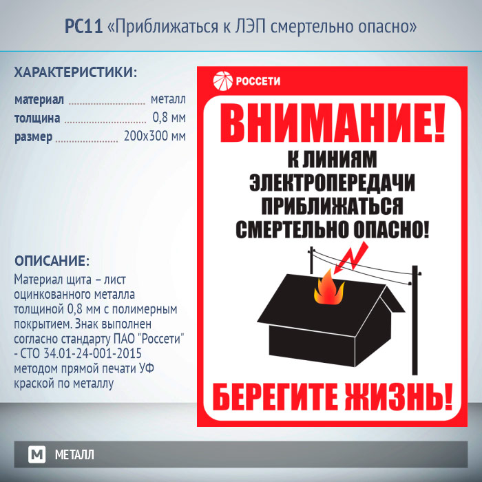 Знак «Приближаться к ЛЭП смертельно опасно», РС11 (металл, 200х300 мм) в Ижевске купить