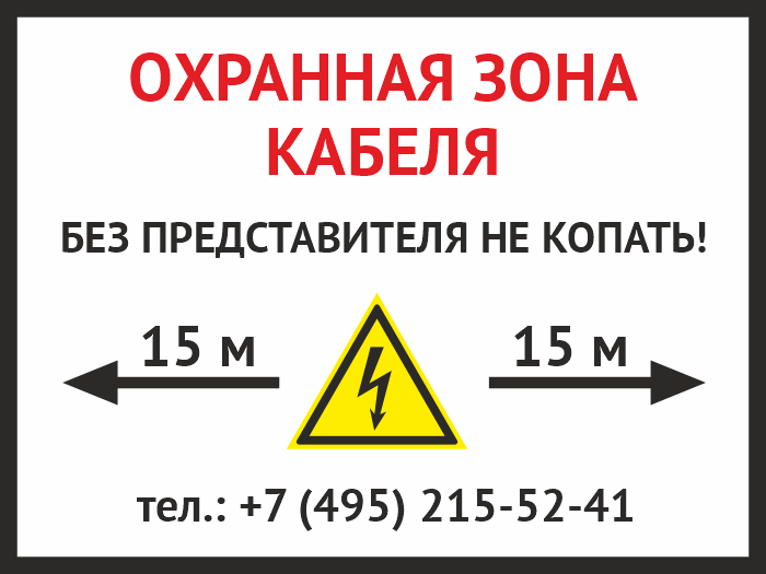 Знак «Охранная зона кабеля. Без представителей не копать», OZK-02 (пластик 2 мм, 400х300 мм) в Ижевске купить