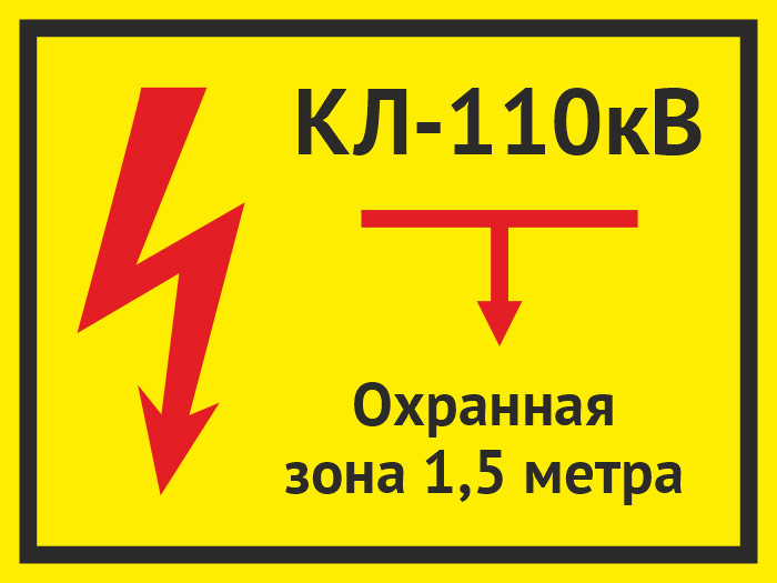 Табличка «КЛ 110 кВ, охранная зона 1.5 метра», OZK-08 (пластик 2 мм, 400х300 мм) в Ижевске купить