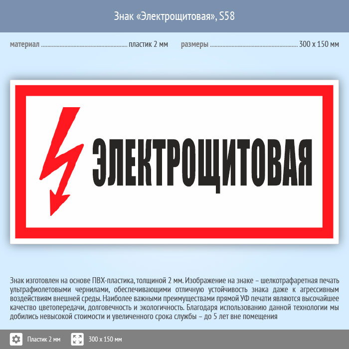 Знак (плакат) «Электрощитовая», S58 (пластик, 300х150 мм) в Ижевске купить