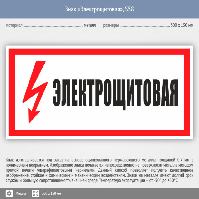 Знак (плакат) «Электрощитовая», S58 (металл, 300х150 мм) в Ижевске купить