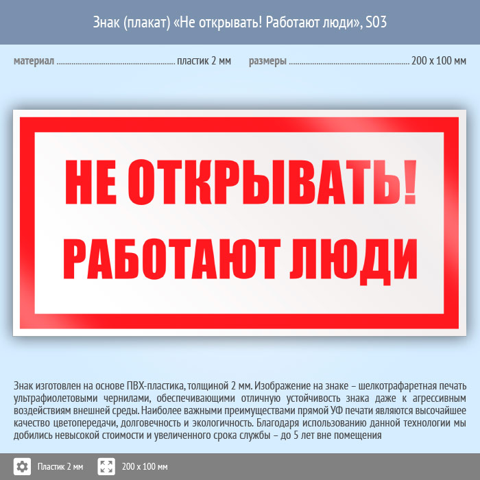 Знак (плакат) «Не открывать! Работают люди», S03 (пластик, 200х100 мм) в Ижевске купить
