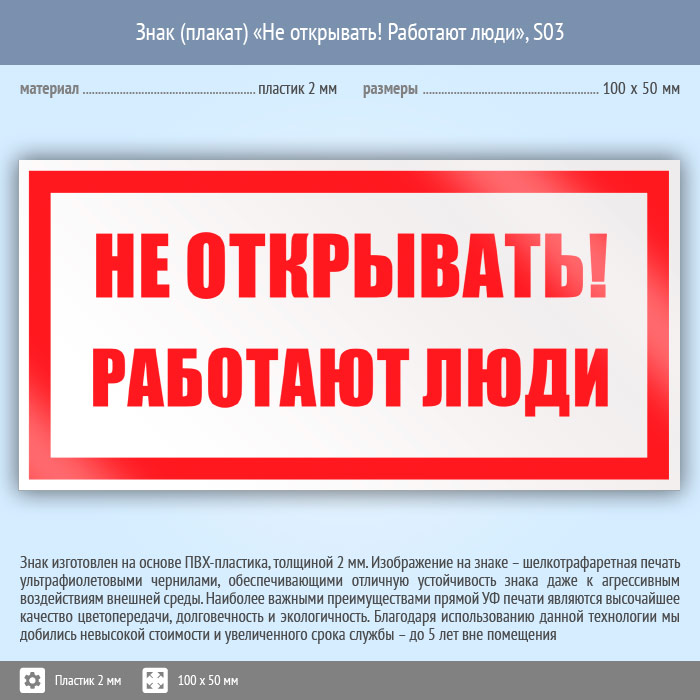 Знак (плакат) «Не открывать! Работают люди», S03 (пластик, 100х50 мм) в Ижевске купить
