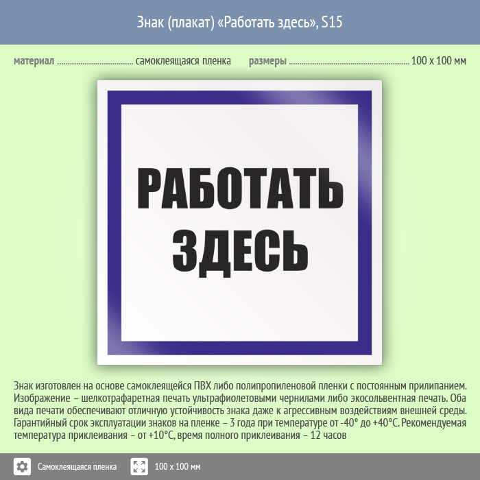 Знак (плакат) «Работать здесь», S15 (пленка, 100х100 мм) в Ижевске купить
