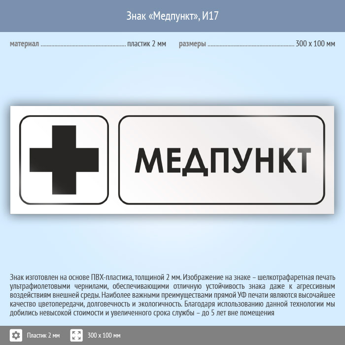 Знак «Медпункт», И17 (пластик, 300х100 мм) в Ижевске купить