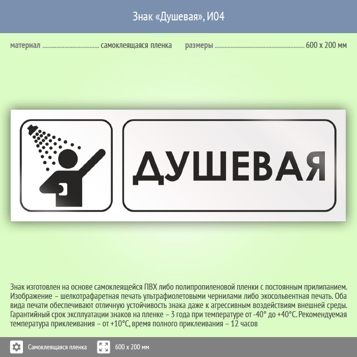 Знак «Душевая», И04 (пленка, 600х200 мм) в Ижевске купить