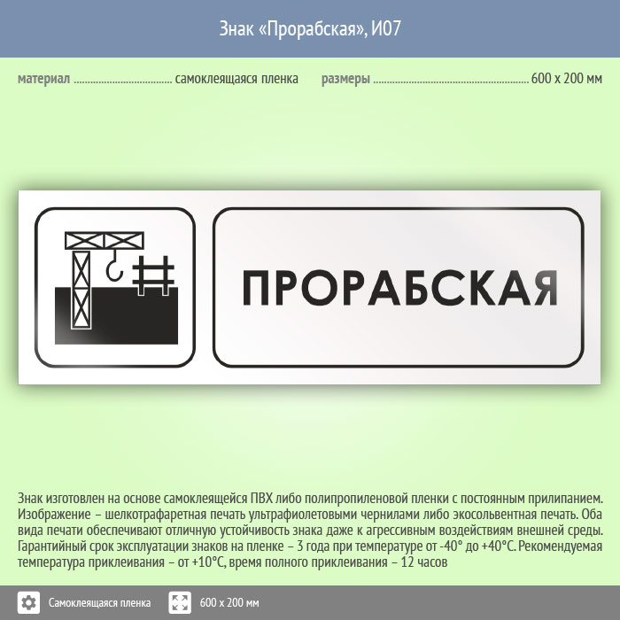 Знак «Прорабская», И07 (пленка, 600х200 мм) в Ижевске купить