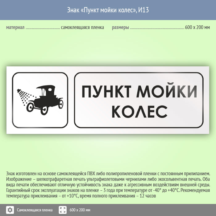Знак «Пункт мойки колес», И13 (пленка, 600х200 мм) в Ижевске купить