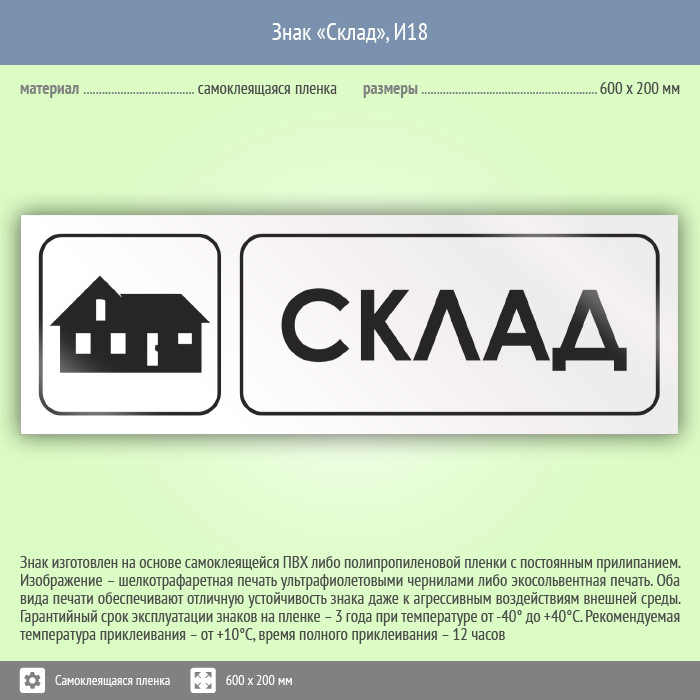 Знак «Склад», И18 (пленка, 600х200 мм) в Ижевске купить