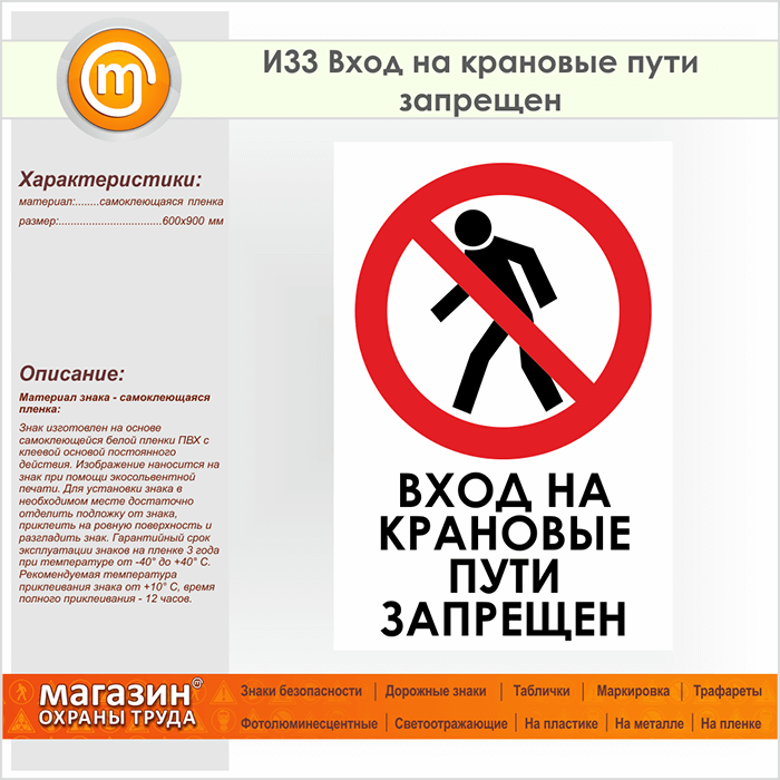 Знак «Вход на крановые пути запрещен», И33 (пленка, 600х900 мм) в Ижевске купить