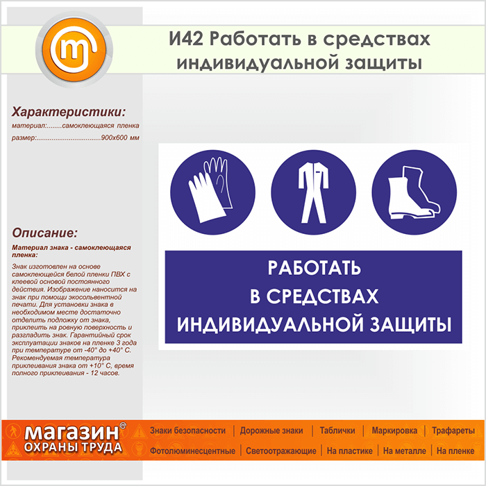 Знак «Работать в средствах индивидуальной защиты», И42 (пленка, 900х600 мм) в Ижевске купить
