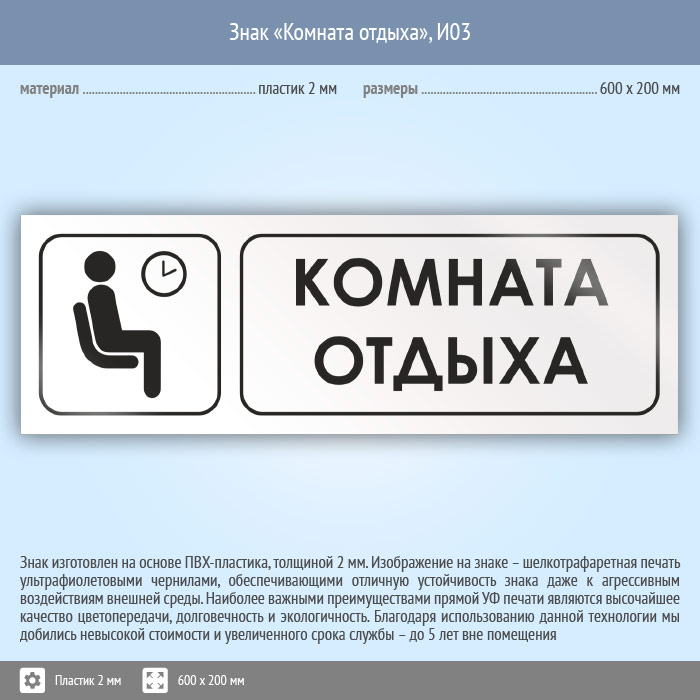 Знак «Комната отдыха», И03 (пластик, 600х200 мм) в Ижевске купить
