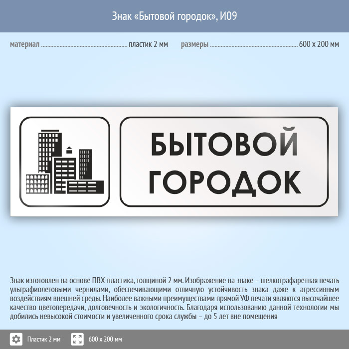 Знак «Бытовой городок», И09 (пластик, 600х200 мм) в Ижевске купить