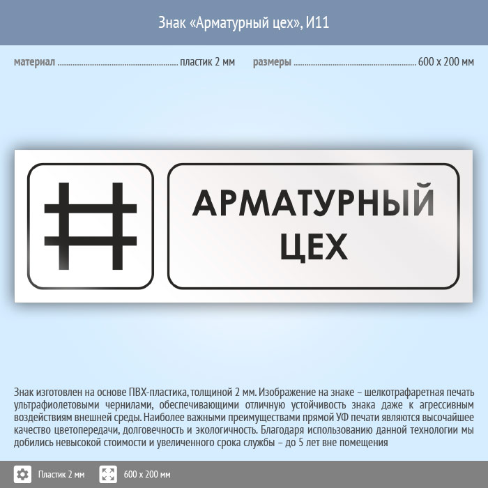 Знак «Арматурный цех», И11 (пластик, 600х200 мм) в Ижевске купить