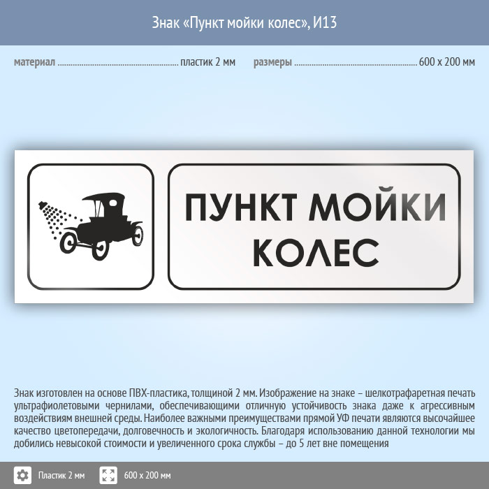 Знак «Пункт мойки колес», И13 (пластик, 600х200 мм) в Ижевске купить