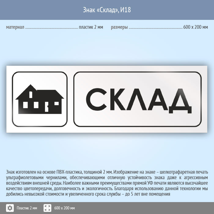 Знак «Склад», И18 (пластик, 600х200 мм) в Ижевске купить