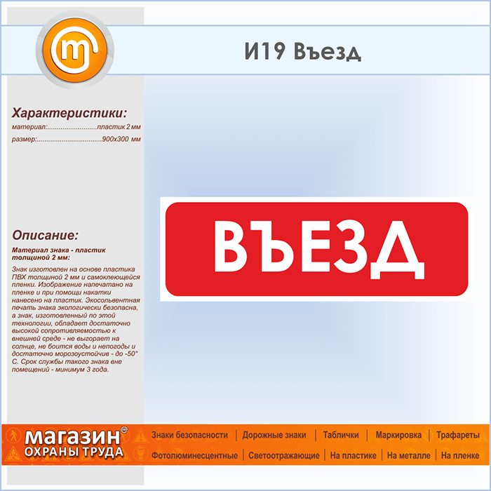 Знак «Въезд», И19 (пластик, 900х300 мм) в Ижевске купить