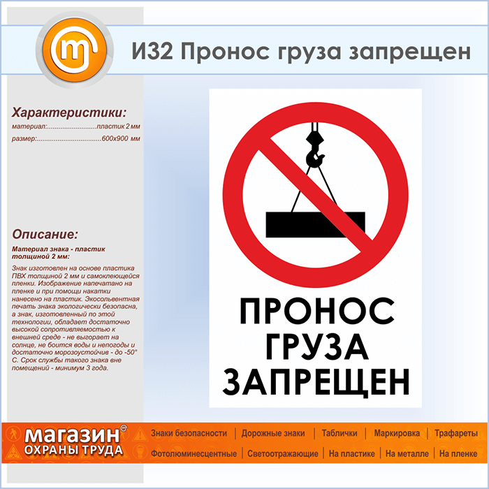Знак «Пронос груза запрещен», И32 (пластик, 600х900 мм) в Ижевске купить