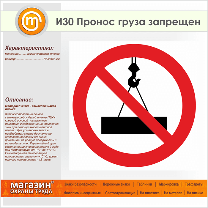 Знак «Пронос груза запрещен», И30 (пленка, 700х700 мм) в Ижевске купить