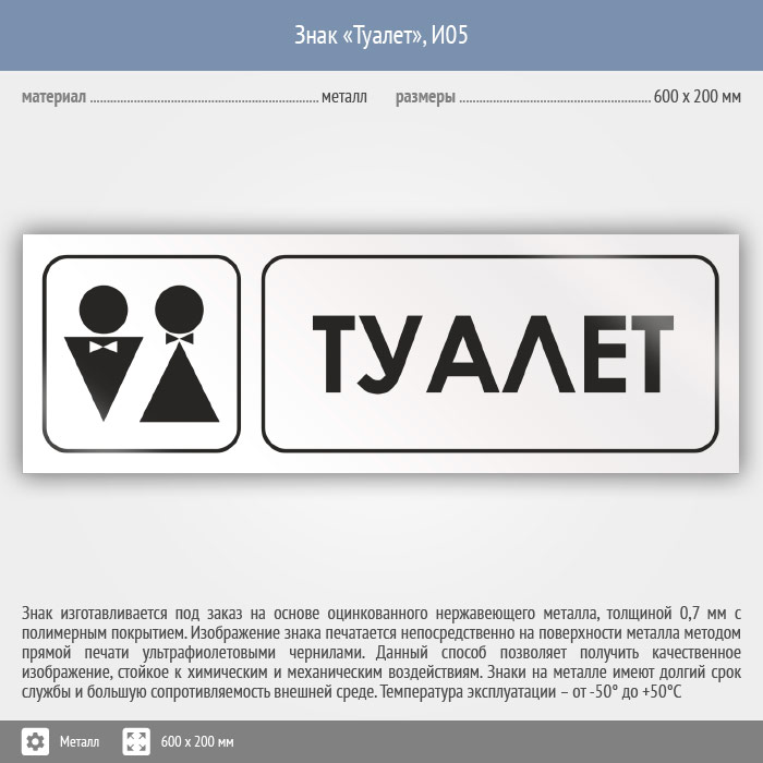 Знак «Туалет», И05 (металл, 600х200 мм) в Ижевске купить