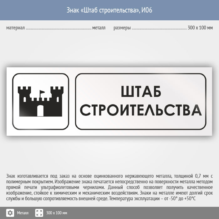 Знак «Штаб строительства», И06 (металл, 300х100 мм) в Ижевске купить