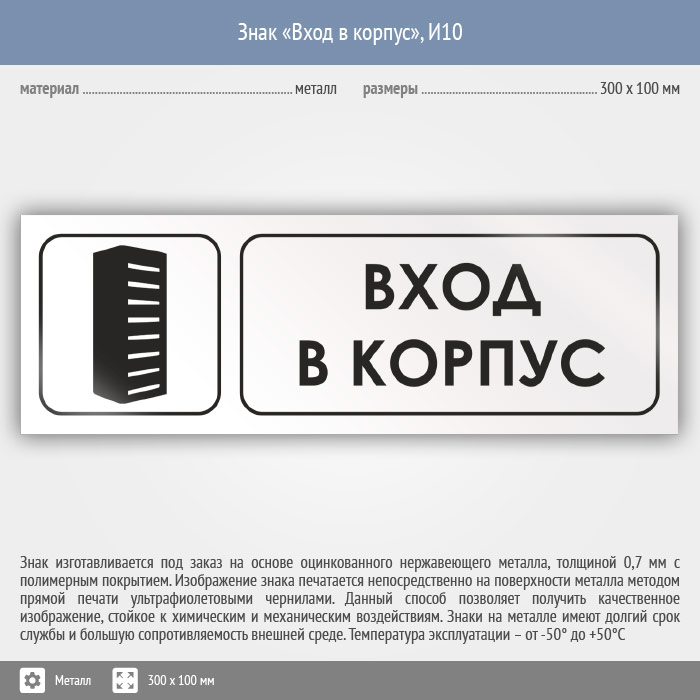 Знак «Вход в корпус», И10 (металл, 300х100 мм) в Ижевске купить