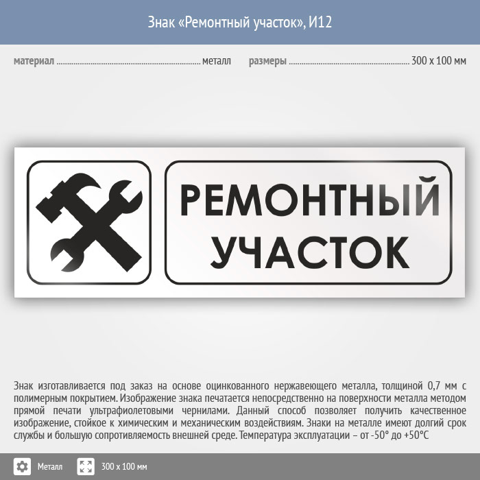 Знак «Ремонтный участок», И12 (металл, 300х100 мм) в Ижевске купить