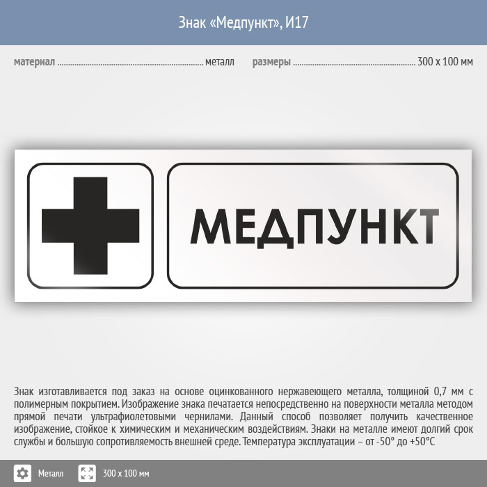 Знак «Медпункт», И17 (металл, 300х100 мм) в Ижевске купить