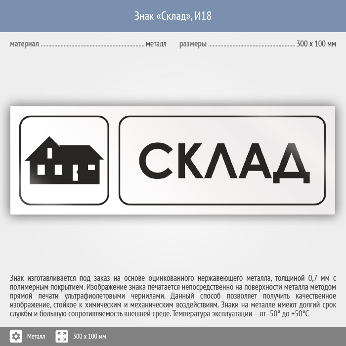 Знак «Склад», И18 (металл, 300х100 мм) в Ижевске купить